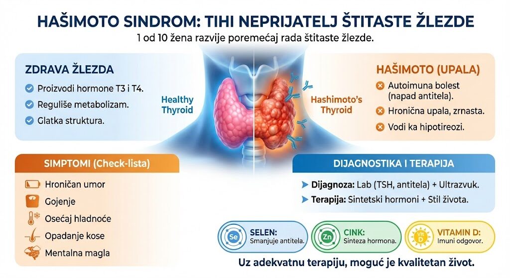 Bolest ne definiše osobu, ali zahteva odgovoran pristup. Kada se terapija prilagodi i svakodnevne navike usklade, Hašimoto postaje stanje koje se drži pod kontrolom, a ne prepreka svakodnevici.